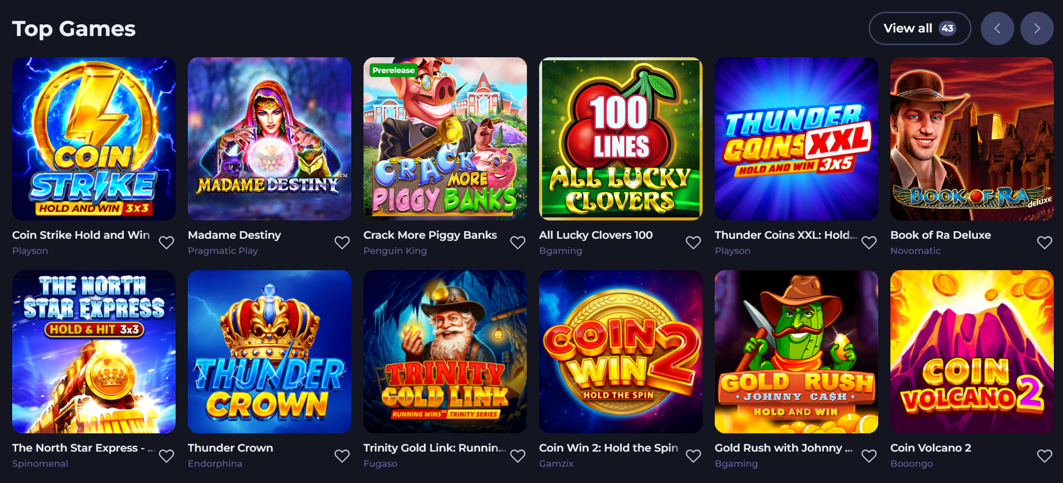 If you’re not sure where to start, the Top Games section is a good place to begin. It shows the titles that are currently most popular with players in the UK, including well-known slot games and fan-favourite releases.
